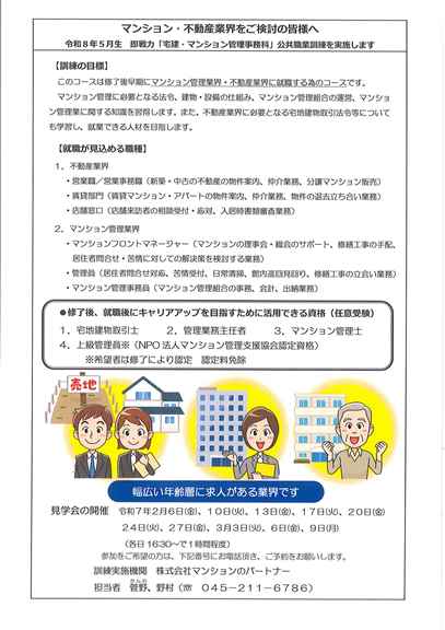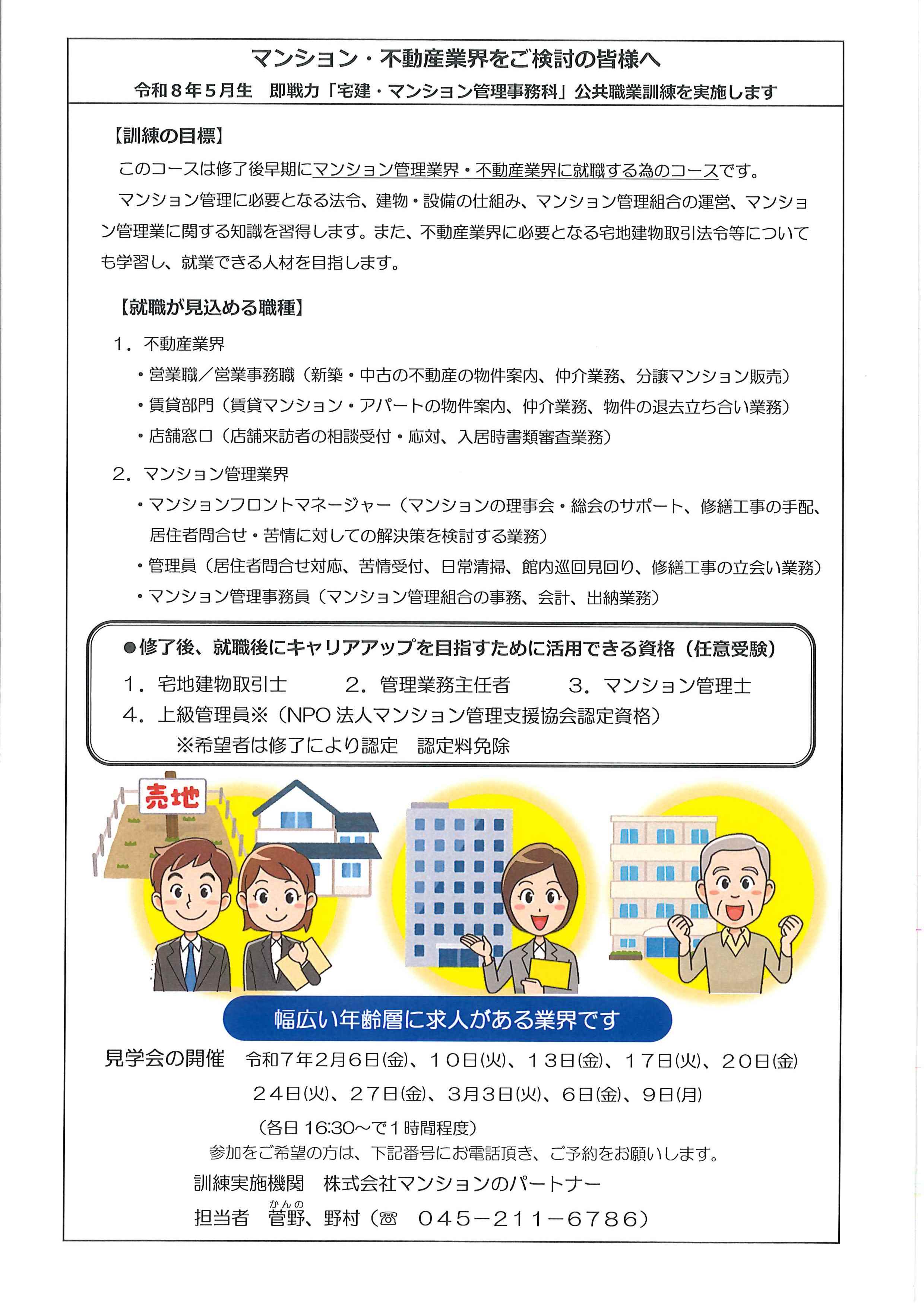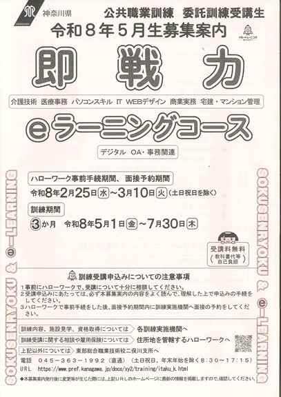 訓練期間:令和8年5月1日(金)~令和8年7月30日(木) 3ヶ月間